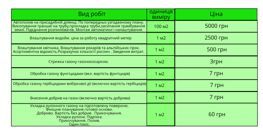Ціни на роботи у Луцьку ,ландшафтний дизайн